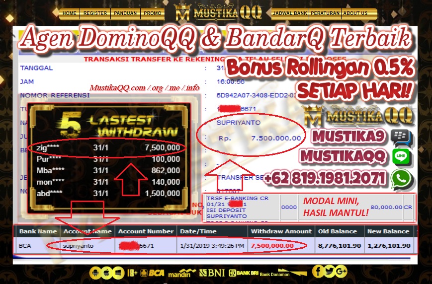 Terkenal sebagai Agen BandarQ Online Terpercaya, MustikaQQ juga memanjakan seluruh usernya dengan support transaksi bank lokal 24Jam Online NONSTOP! Semakin memudahkan seluruh player untuk bermain taruhan kartu online kapanpun dan dimanapun.